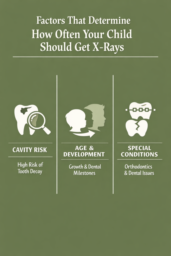The timing of your child’s pediatric dentistry X-rays depends on several important factors rather than following a rigid schedule. Each child’s oral health journey is unique, so their X-ray needs will be, too. We consider multiple aspects of your child’s dental health before recommending imaging.